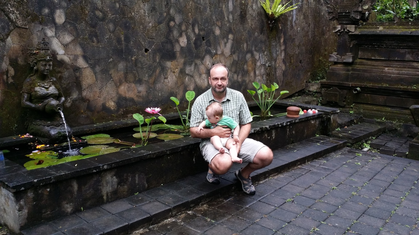Домой вернулись уже около шести вечера. По дороге домой, уже на подъезде к отелю, пошел дождь впервые за две недели. И мы все отогревались в горячей воде в душе, а Мишу посадили отмокать в большую ванну, которая, кстати, ему очень понравилась, после нашей маленькой ванночки дома.