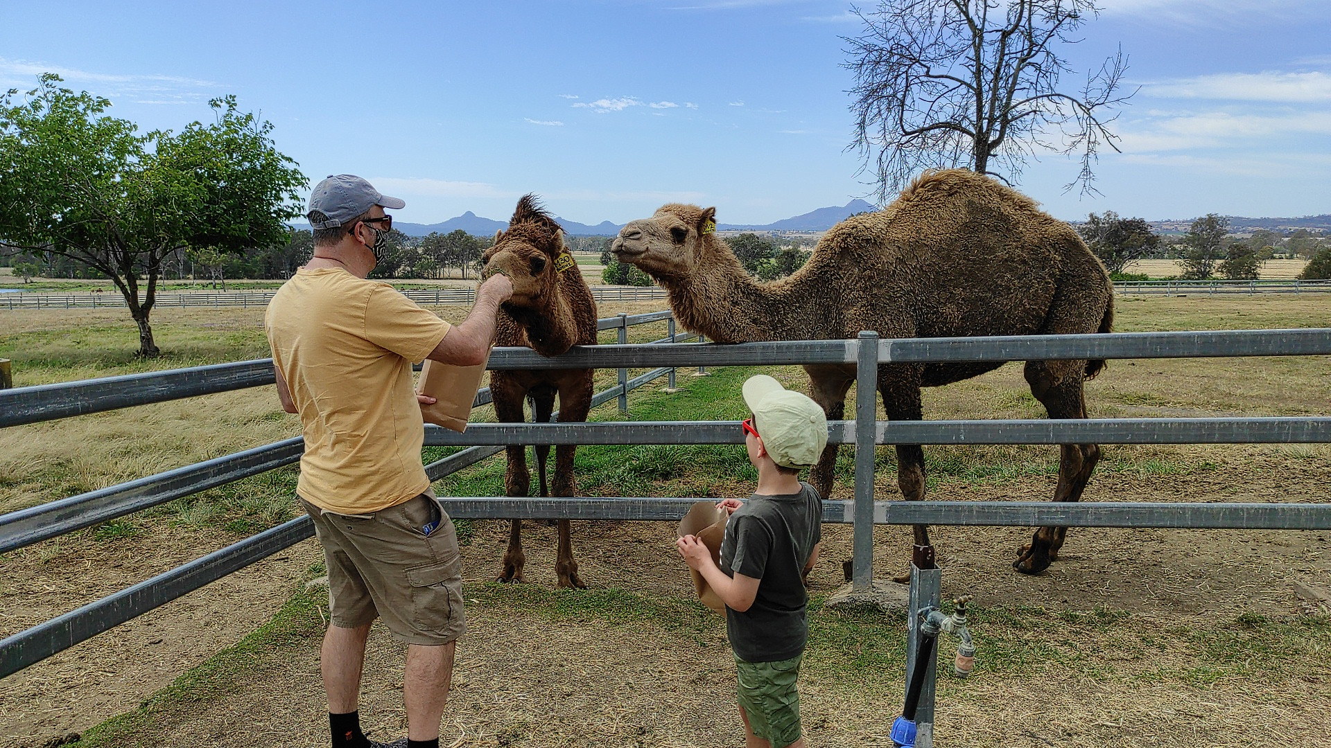 Туда можно приехать на бесплатную экскурсию и пойти смотреть на верблюдов. Или можно купить пакет верблюжьей еды ($2) и пойти их кормить.