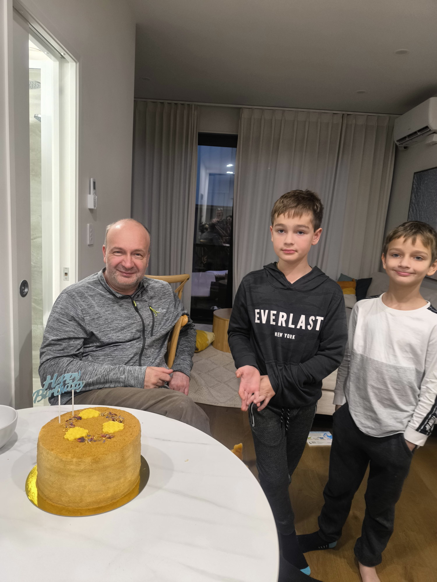 А потом, мы с мальчиками полетели назад, домой в Брисбен, а Рост остался работать на неделю.