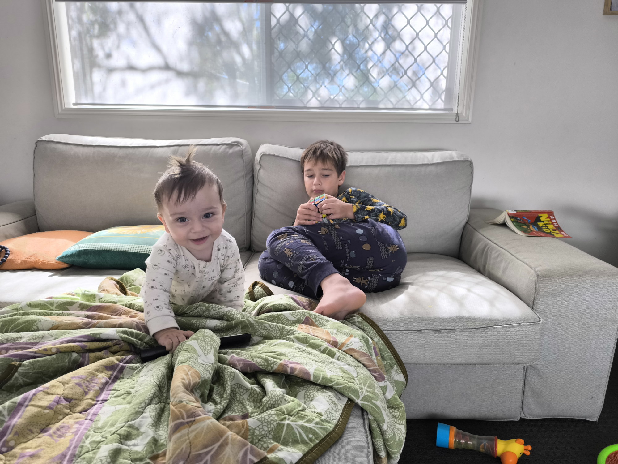 Мне сделали операцию на левой руке и первые пару недель было непросто - не поднять малыша, не переодеть. Но мальчики очень сильно помогали - и укачивали и переодевали, и меняли. Молодцы!