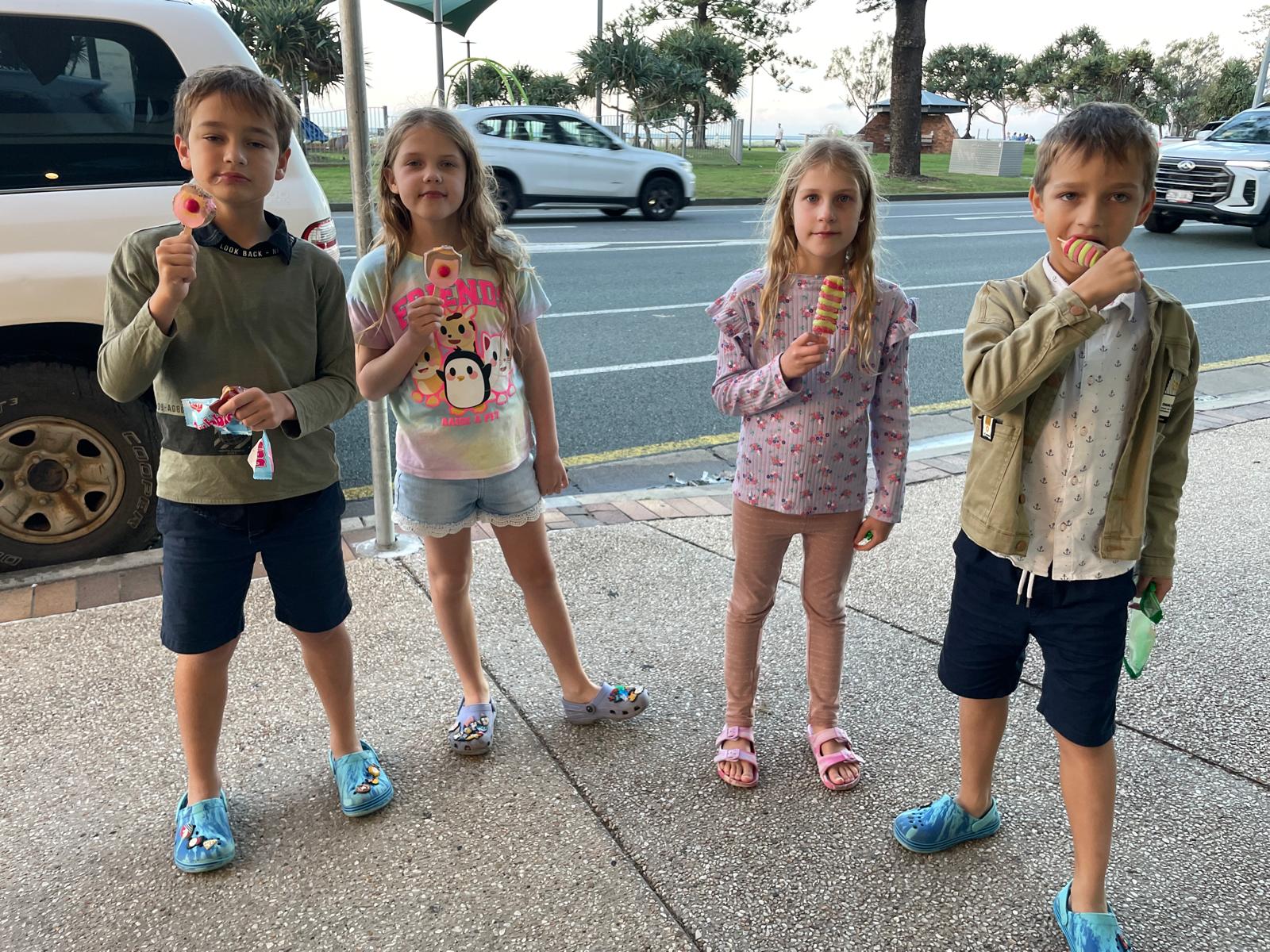Лёва: У меня тоже было мало, я просто размазал по тарелке, чтобы казалось много! (Бедные дети, привыкли каждый есть мороженое в Австралии 😅😂).