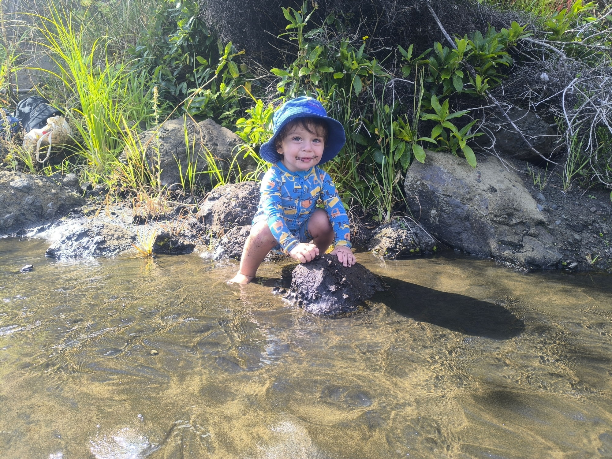 Но, когда мы вернулись к началу, мы 1.5 часа плескались в ручейке, играли с песком и наступило счастье! Мальчики тоже остались довольны, что дошли до конца и искупались!